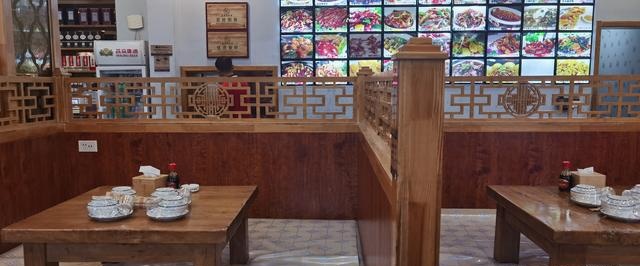 这个饭铺不在傍边,走路大致5分钟才到,饭铺相比大,装修也可以,墙壁上挂着着匹夫餐厅和省心食材的牌子。