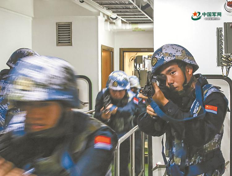 攻防交错,战况强烈。几轮火力打击后,“敌舰”被击毁,编队快速除掉交往海域。此时,空中“敌机”又发起袭击。编队教唆员立即下令对空凝视,各舰赶快摄取施放烟雾、辐照打扰弹等举措,灵验化解了空中要挟。