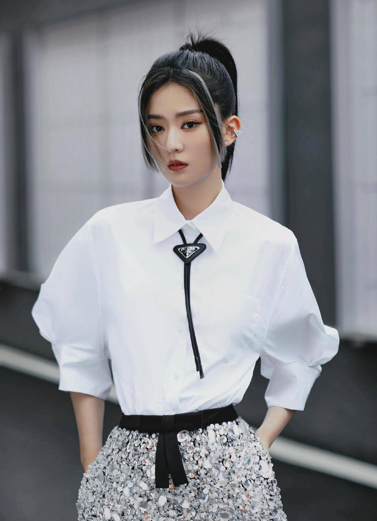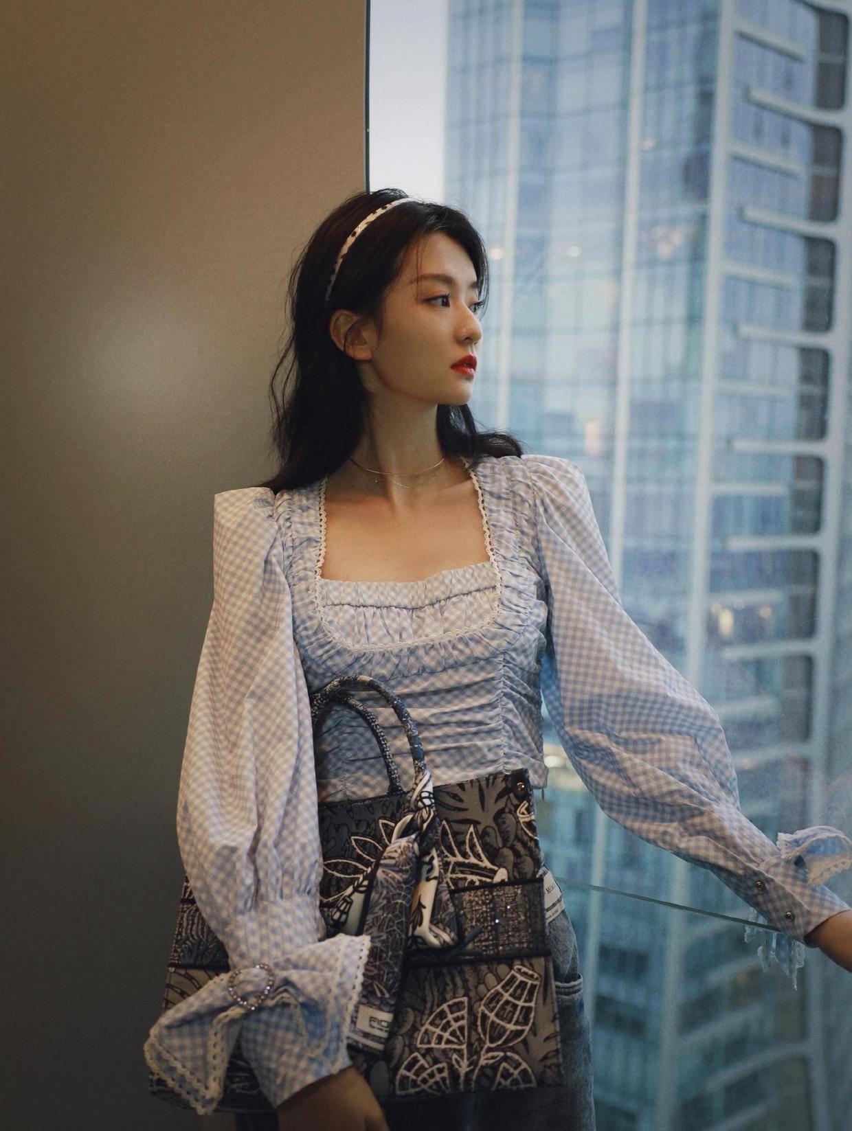 平日外出时,咱们也不错采用一些浅薄但仙女感十足的上衣,像乔欣的这两身looks,前者天然呈现白色,但在领口点缀了logo与玄色的线条,再加上廓形的剪裁,就颇有仙女感了,尔后者哄骗格纹元素与泡泡袖带来了很可人俏皮的魔力,只需要在其中融入蓝白色的格纹就能打造出温婉的气质,减龄感超强。