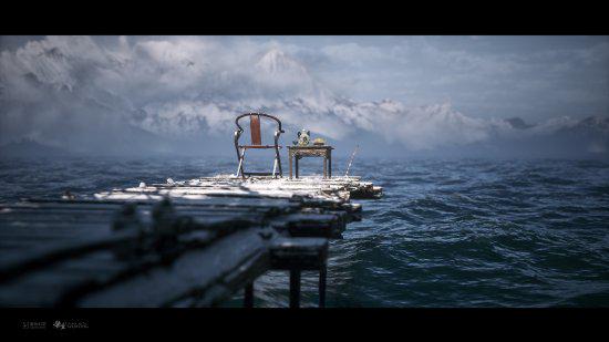 图中水面上方放弃了一把椅子一张方桌,似乎有东说念主曾在此钓鱼,迢遥是被雪遮蔽的绵延山脉。驳斥区有玩家科普图中的椅子恰是“交椅”,下半部分椅足呈交叉状是彰着的交椅特征,也顺应椅圈弧线弧度柔柔、配有后背椅板和靠手的特征。
