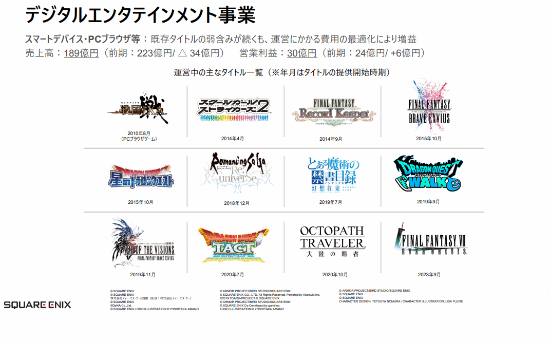 财报施行涌现,由于本财年短缺新作的发布,数字文娱业务方面销售额相较于旧年同时有所着落,为439.05亿日元,着落29.6%;但买卖利润为97.71亿日元,同比高潮255.9%。