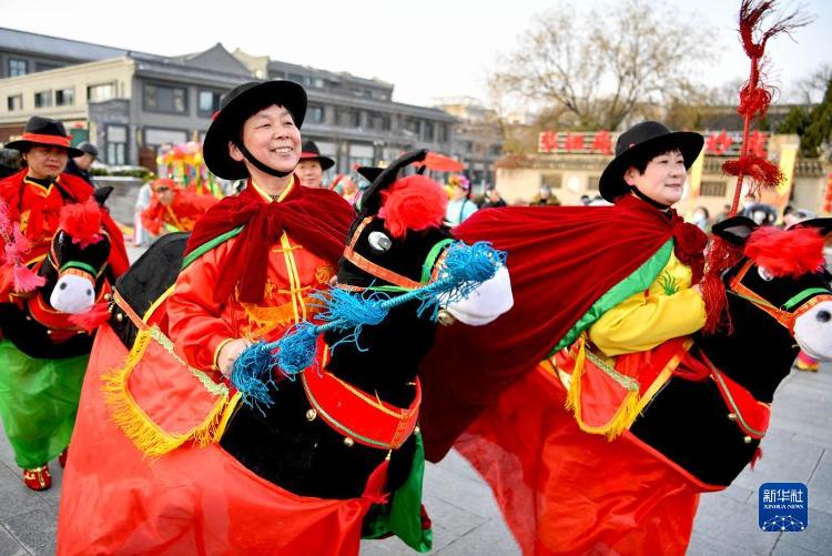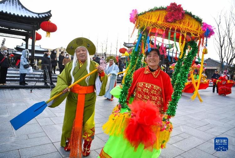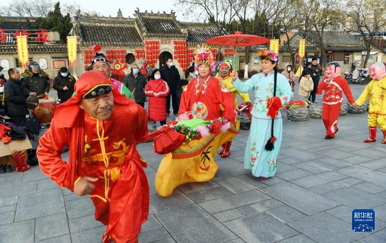 1月15日,民间艺东说念主在亳州市谯城区华佗广场进行习惯饰演。