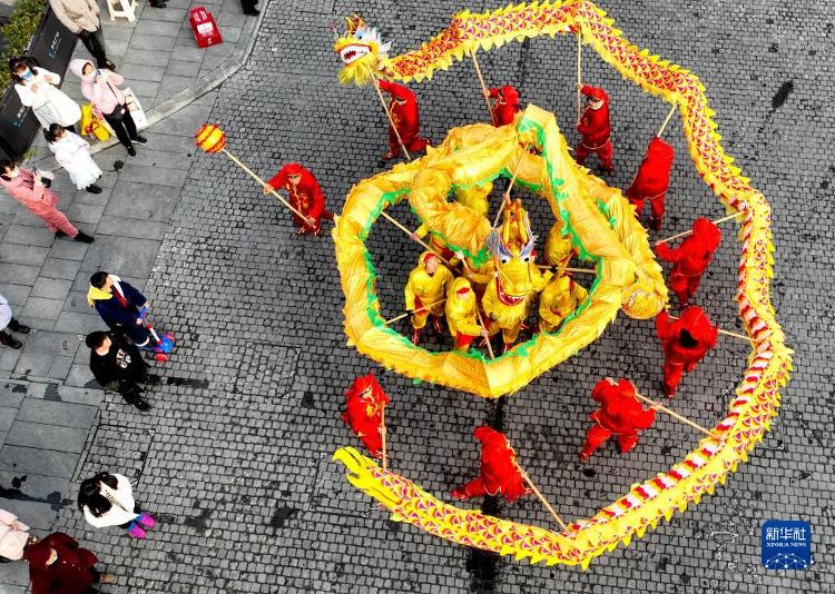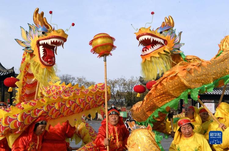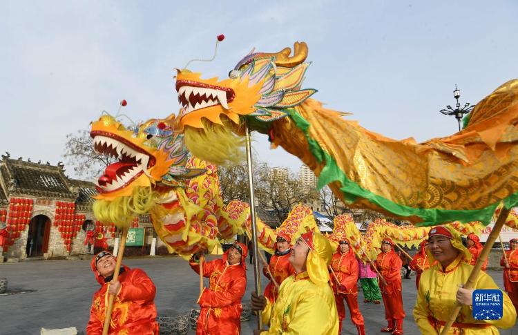 春节相近,安徽省亳州市举办习惯饰演迎新春活动,民间艺东说念主饰演舞龙、斗驴、抬花轿、扭秧歌等习惯节目,迎接新春佳节的到来。