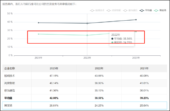 从基本面看,公司毛利率低于行业水平。2021年至2023年,公司的毛利率差别为25.64%、24.25、28.61%;而同时的行业平均值差别为39.23%、38.56%、42.88%。