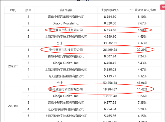 公开贵寓透露,2019年,博实结第一大客户为青岛中瑞汽车作事有限公司,对其杀青的贸易收入约为1.41亿元,占公司主贸易务收入的比重约为18.10%;2020年,博实结第一大客户变新增为欣旺达电子股份有限公司,往时杀青的贸易收入约为1.57亿元,占公司主贸易务收入的比例为15.11%;2021年,公司又新增第一大客户又为财付通支付科技有限公司,对应贸易收入约为1.90亿元,占当期主贸易务收入的比重为14.42%。